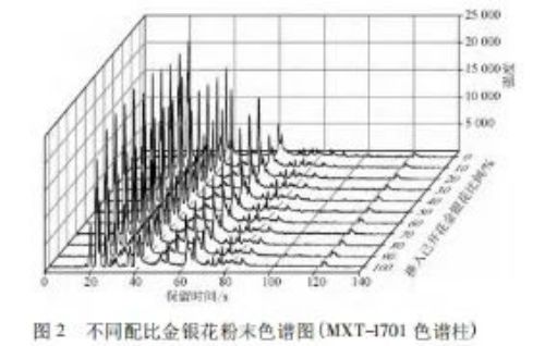采用HeraclesⅡ超快速氣相電子鼻對不同調(diào)配比例金銀花粉末樣品的色譜數(shù)據(jù)進(jìn)行采集,分析后得出,各調(diào)配比例金銀花粉末的可能成分及感官描述信息基本相同,僅含量存在一定差別。同時,得出己醛氣味可能為判別金銀花粉末質(zhì)量的關(guān)鍵因素。此外,通過PCA,DFA,實現(xiàn)了打粉后摻入完全開花金銀花比例的快速識別,而且2種模型起到了相互驗證的作用。在采用濃度量化建模后,還實現(xiàn)了基于完全開花金銀花摻入比例的粉末質(zhì)量分級。綜前所述,HeraclesⅡ超快速氣相電子鼻分析可以作為一種快速鑒別金銀花粉末質(zhì)量的方法。